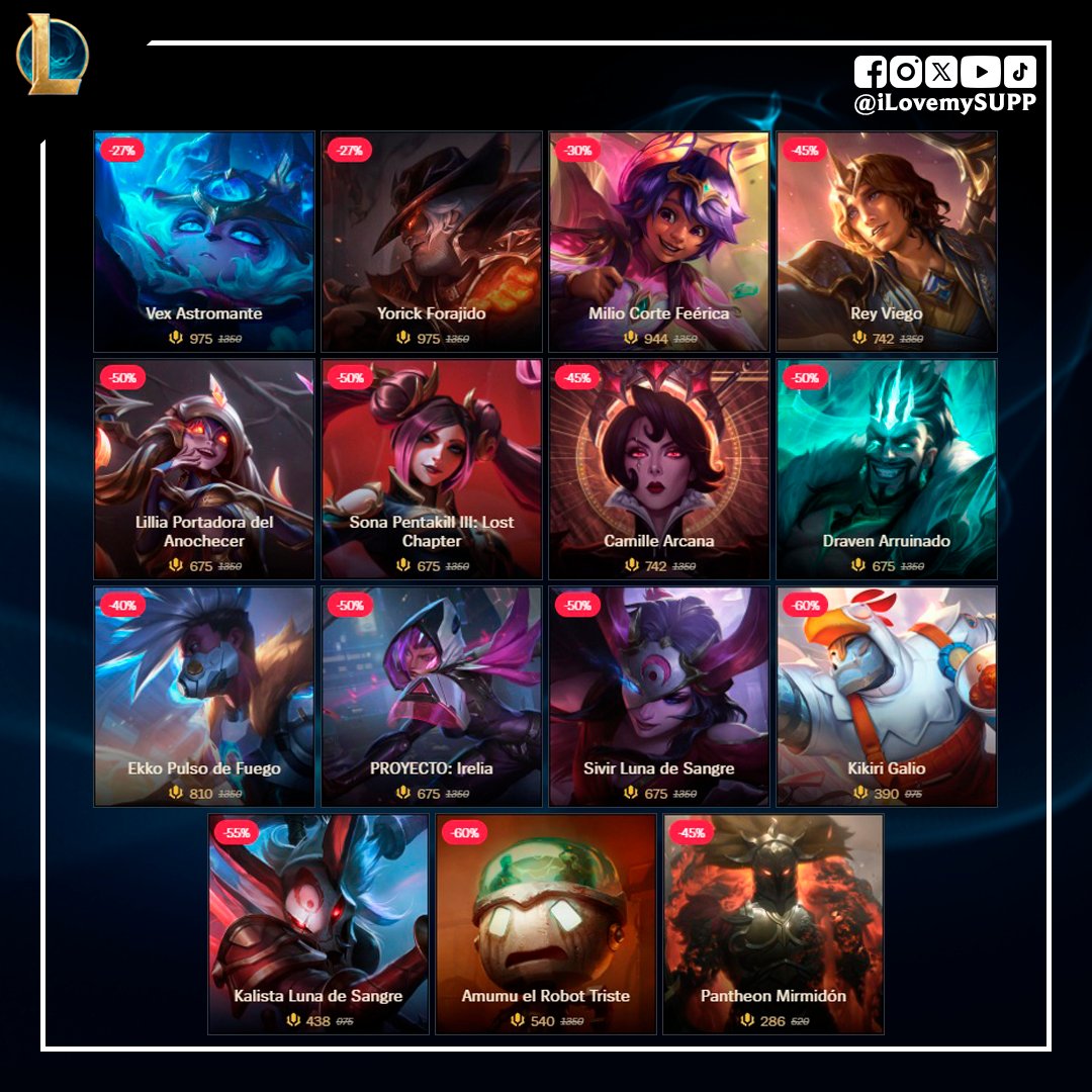 En una nueva semana, Riot trae un nuevo grupo de skins para la tienda de League of Legends que estarán disponibles en la tienda con sus respectivos descuentos desde el Lunes 6 de hasta el Lunes 13 de Octubre.