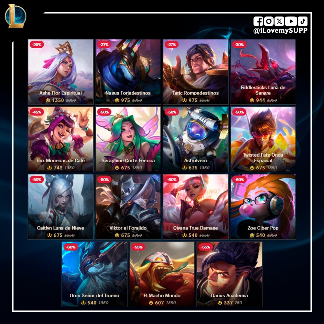 En una nueva semana, Riot nos trae un nuevo grupo de aspectos con distintas ofertas junto a una sorpresa, la cual es una skin legendaria en descuento. Esta vez le toco a Ashe Flor Espiritual, que pasara de costar 1820RP a 1350RP. Esta skin, junto a muchas otras, estarán disponibles en la tienda de League of Legends desde el Lunes 13 hasta el Lunes 20 de Octubre.