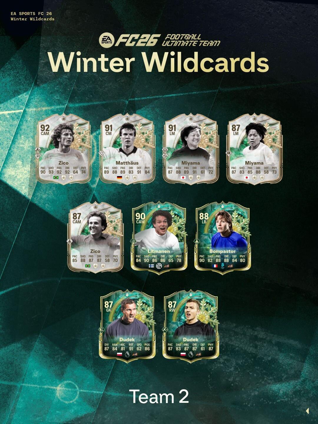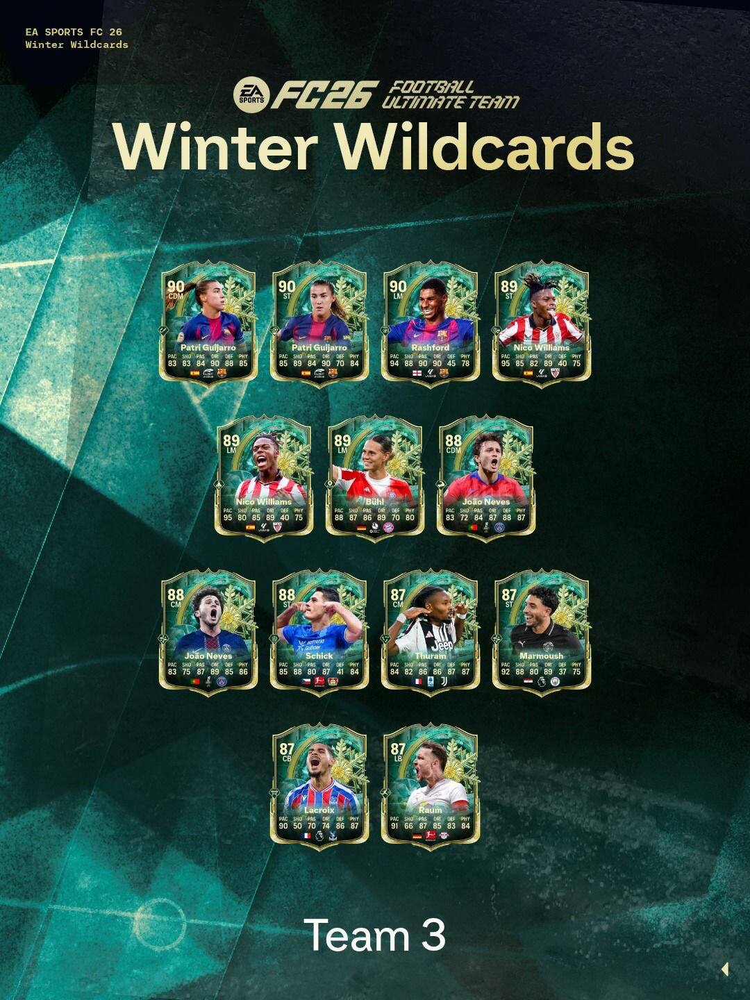Como regalo de navidad, EA SPORTS trajo 2 equipos de los comodines de invierno juntos, para que podamos disfrutar de mucho mas contenido tanto en sobres como en objetivos o en DCP´s. Estos jugadores estarán disponibles en sobres a partir del Viernes 26 de Diciembre. Algunas de las mejores Cartas son Pedri, Patri Guijarro y Rashford.