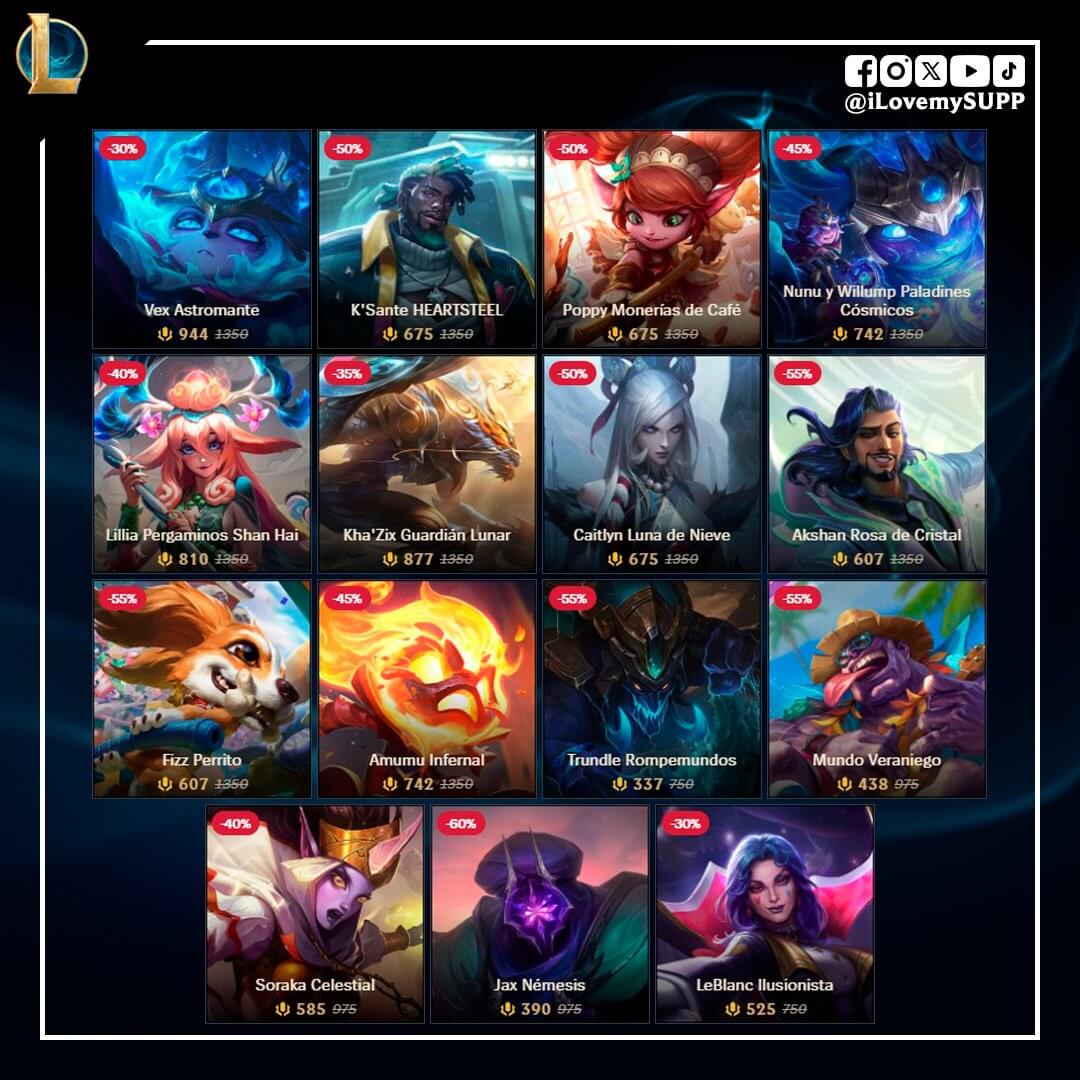 En una nueva semana, Riot trae un nuevo grupo de aspectos con sus respectivos descuentos que estaran disponibles en la tienda de League of Legends desde el Lunes 12 hasta el Lunes 19 de Enero.