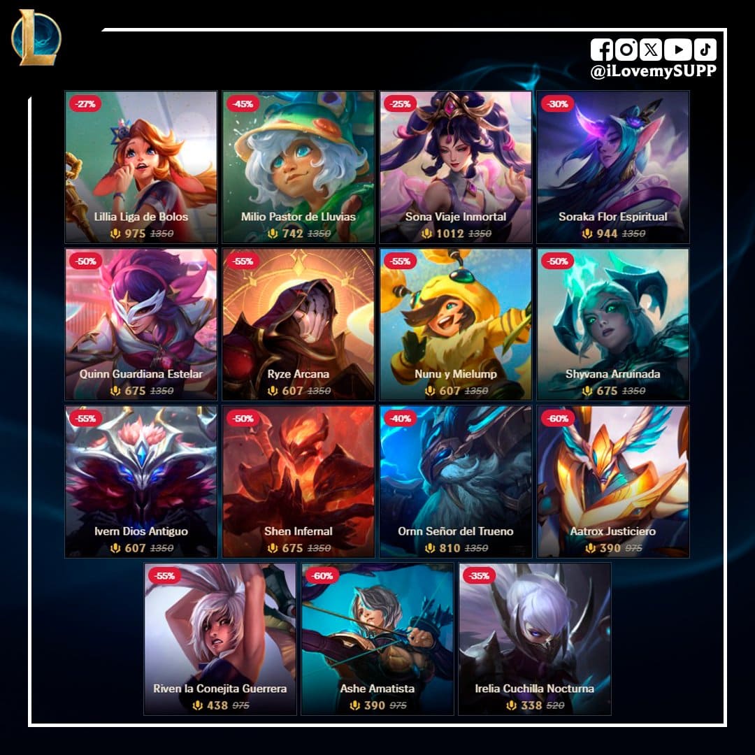 En una nueva semana, Riot trae un nuevo grupo de aspectos a su tienda de League of Legends que tendran sus respectivos descuentos disponibles desde el Lunes 19 hasta el Lunes 26 de Enero.