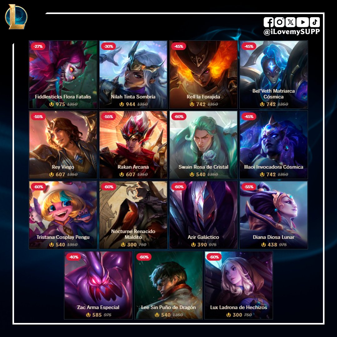 En una nueva semana, Riot trae un nuevo grupo de aspectos con ciertos descuentos disponibles en la tienda de League of Legends desde el Lunes 6 hasta el Lunes 13 de Abril.