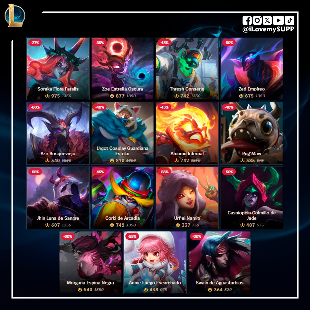 Desde el Lunes 13 hasta el Lunes 20 de Abril, un nuevo grupo de aspectos estará disponible con descuentos en la tienda de League of Legends.